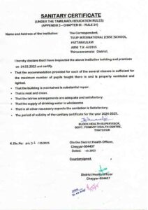 SANITATION CERTIFICATE